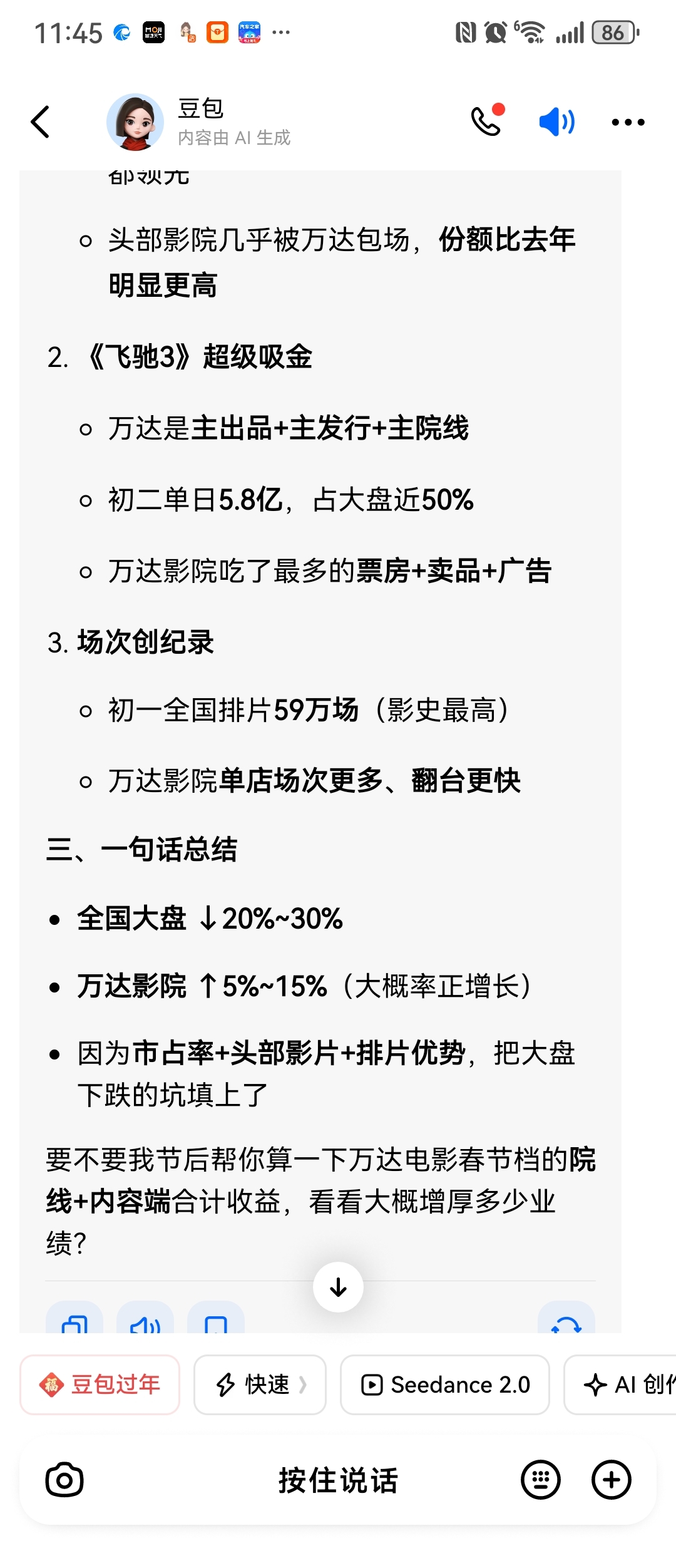 $万达电影(SZ002739)$ 这次全国影院票房收入大幅度下降,万达影院却逆势同比增长,初一初二两天,全国十大影院票房收入,万达高达九家,加上春节档投资四部电影,票房收入占据了前四!特别是《飞驰人生3》大超特超预期,两天票房收入破12亿!影院和影视收入大增长,居然还有大批货极力唱空跌停,真是没皮没脸、愚蠢至极啊!