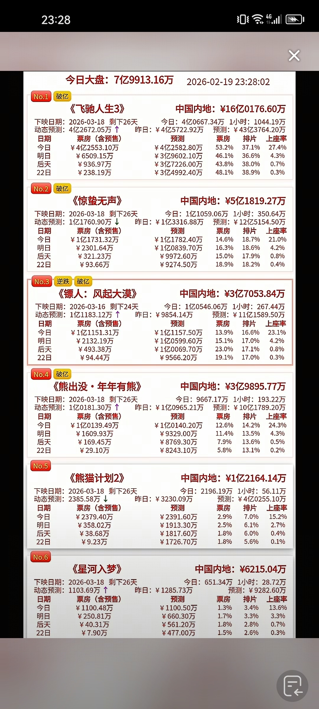 $万达电影(SZ002739)$ 三天了,才28亿左右,春节7天60亿应该是没戏了,节后开盘准备迎接暴击吧