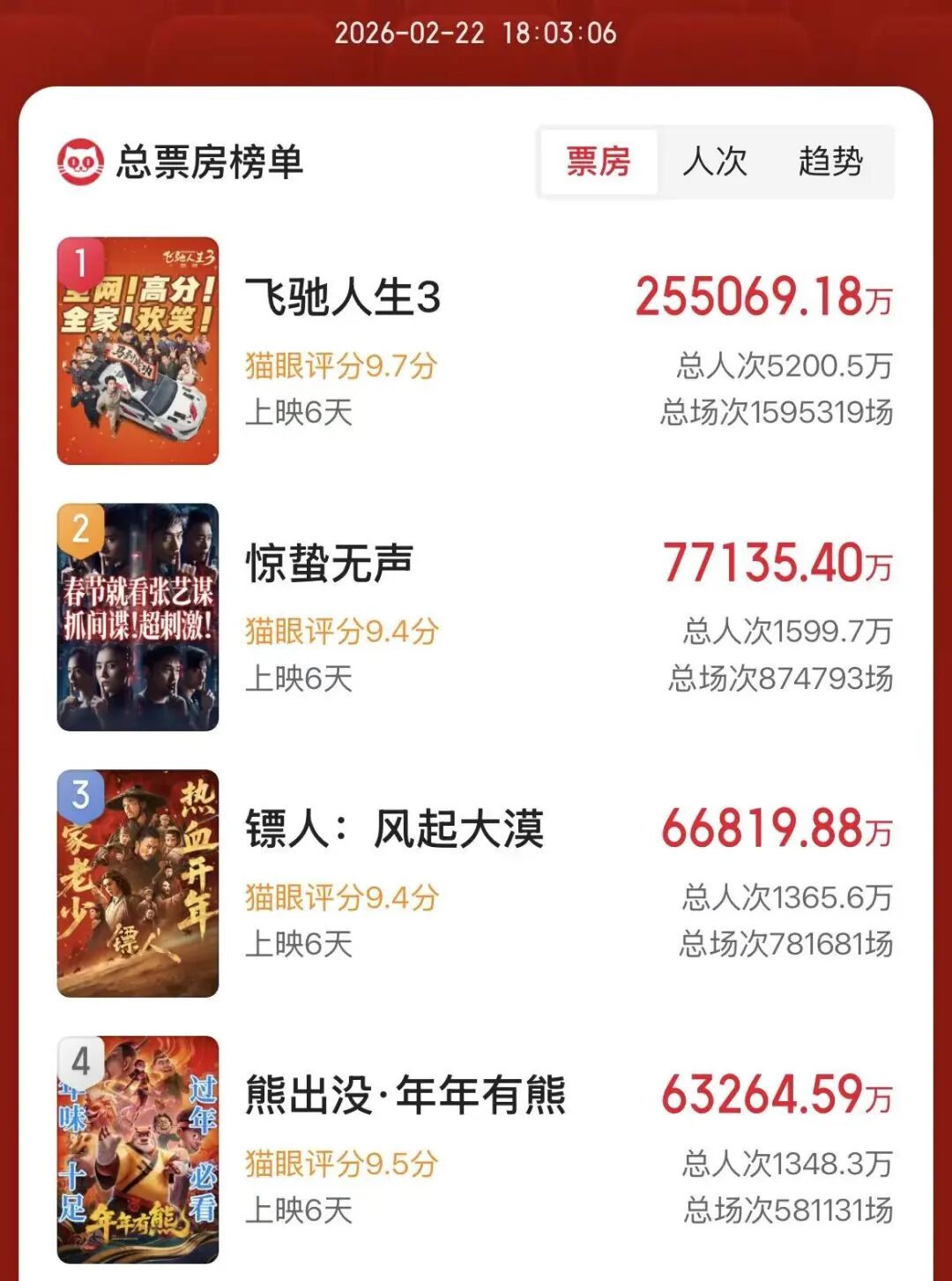 2026年春节档电影票房进入冲刺阶段!