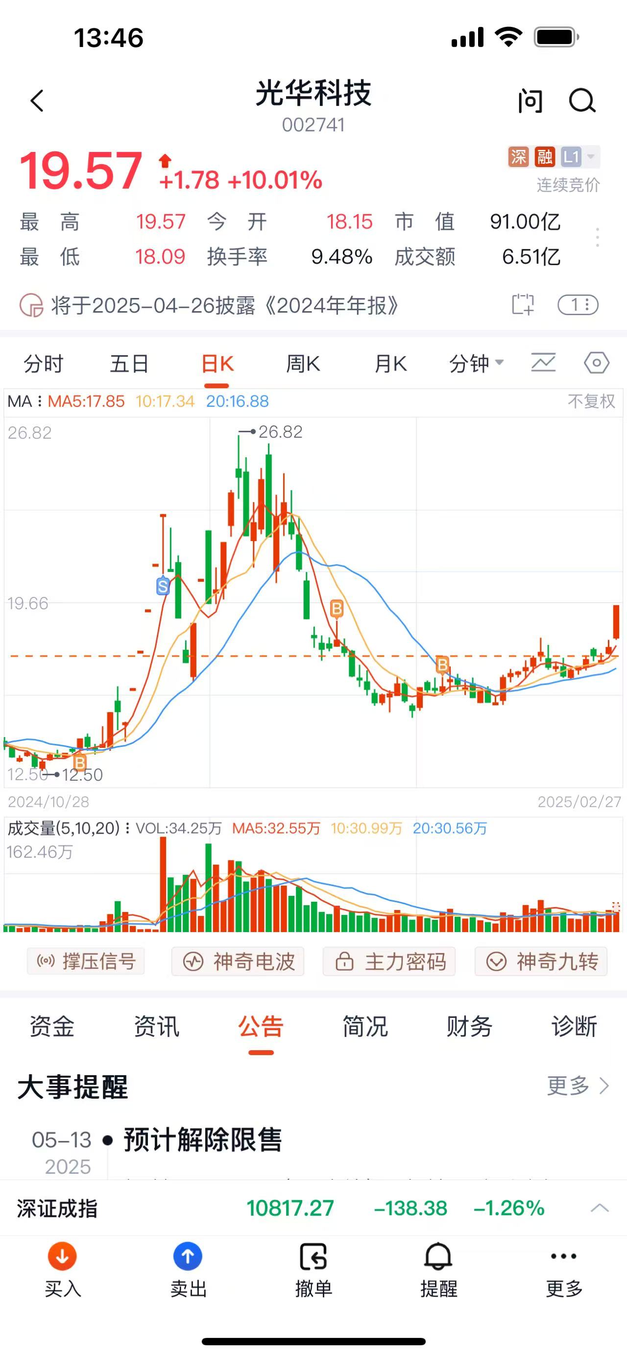 不负如来不负卿,光华科技没让我失望过,继续冲!!!!