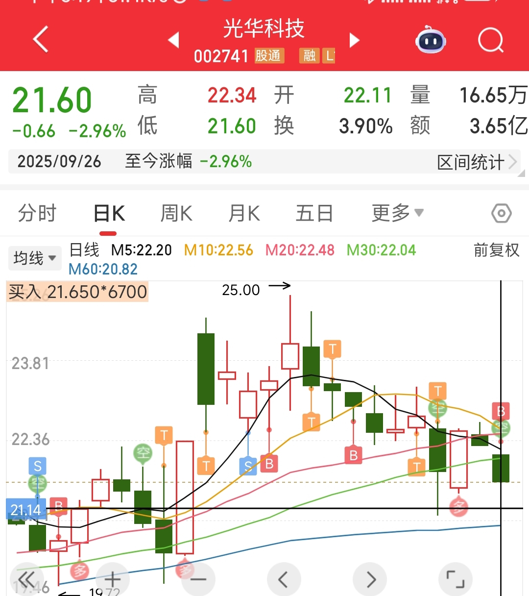 $光华科技(SZ002741)$ 尾盘再进67手。
