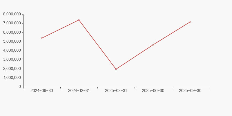 截至2025年9月30日,公司最新总股本为4.65亿股,其中流通股本为4.26亿股。户均持有流通股数量由上期的7125股上升至7291股,户均流通市值16.16万元。