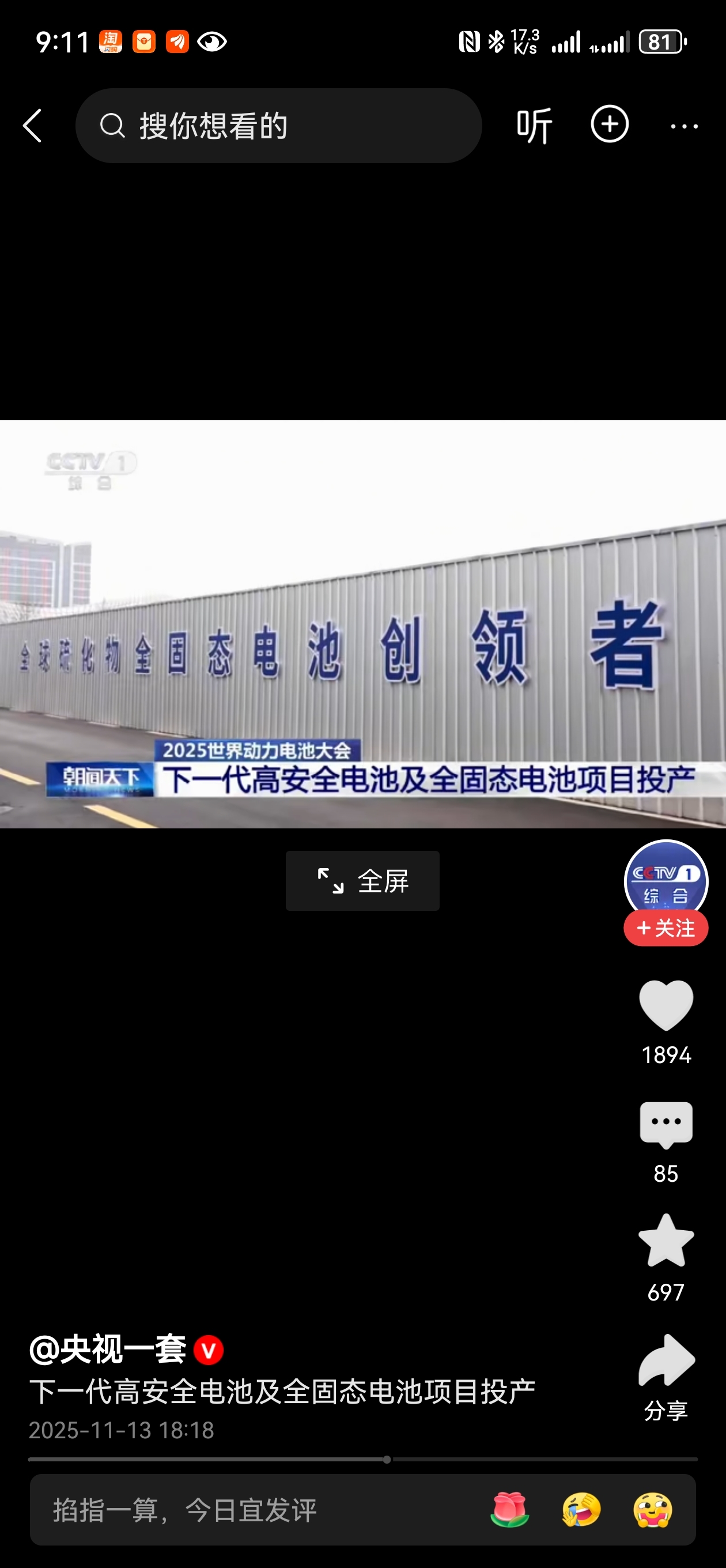 全球硫化物固态电池投产,昨晚央视一套报道。离暴涨不远了,加油!!!
