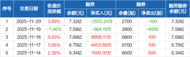 光华科技:融资净偿还2553.24万元,融资余额7.32亿元(11-20)