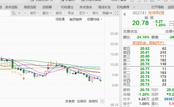 $光华科技(SZ002741)$ 20.79,已建仓买入30%仓位,价格位置安全,距离上次底部只有几毛价差,先买