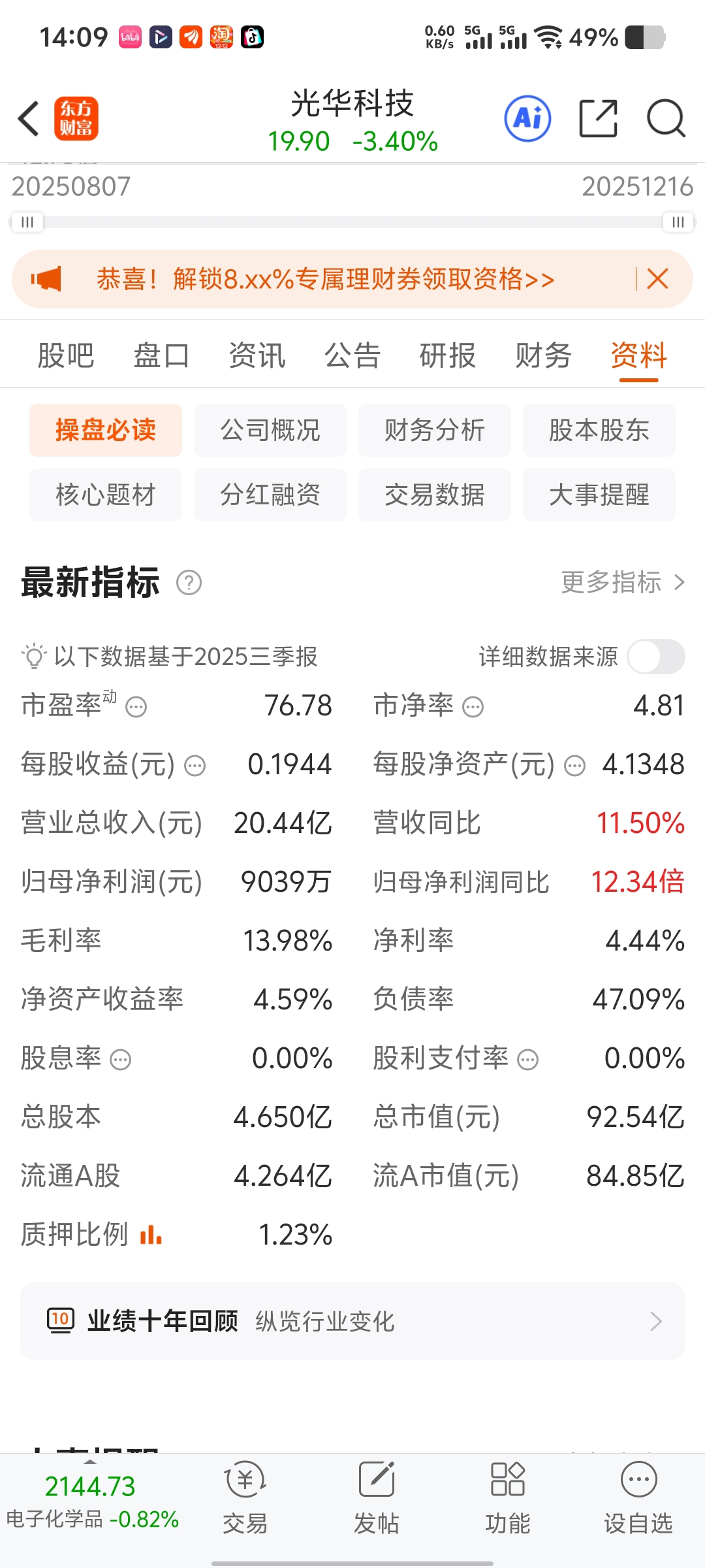 $光华科技(SZ002741)$ 这业绩都在跌 你在搞什么东东