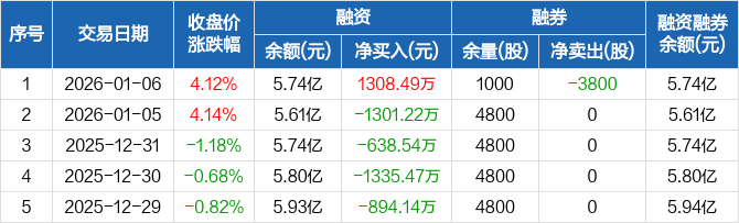 光华科技:融资净买入1308.49万元,融资余额5.74亿元(01-06)