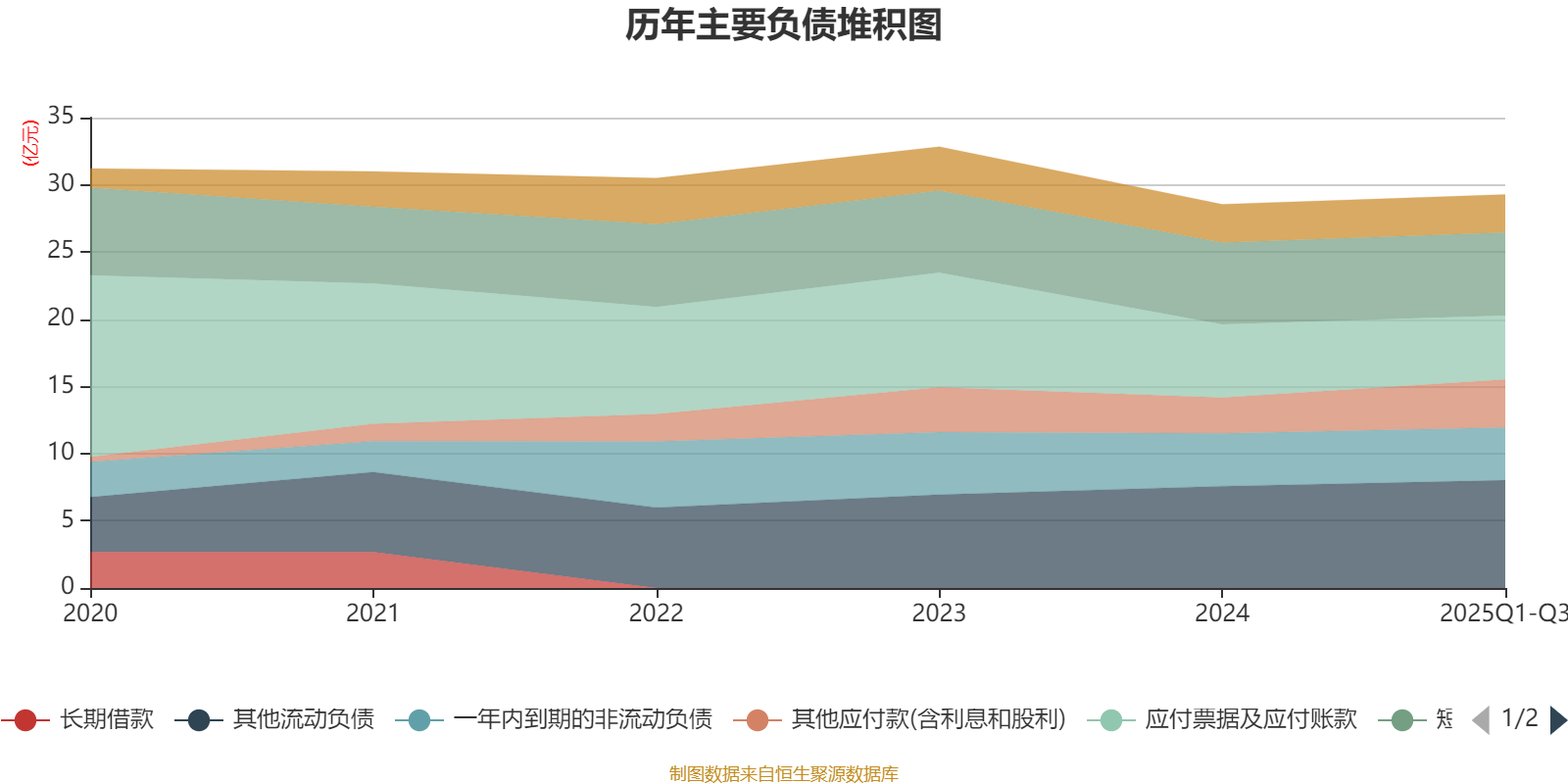 负债重大变化方面,截至2025年三季度末,公司其他应付款(含利息和股利)较上年末增加33.9%,占公司总资产比重上升4.54个百分点;其他流动负债较上年末增加5.8%,占公司总资产比重上升4.15个百分点;短期借款较上年末增加1.59%,占公司总资产比重上升2.28个百分点;一年内到期的非流动负债较上年末增加0.01%,占公司总资产比重上升1.22个百分点。