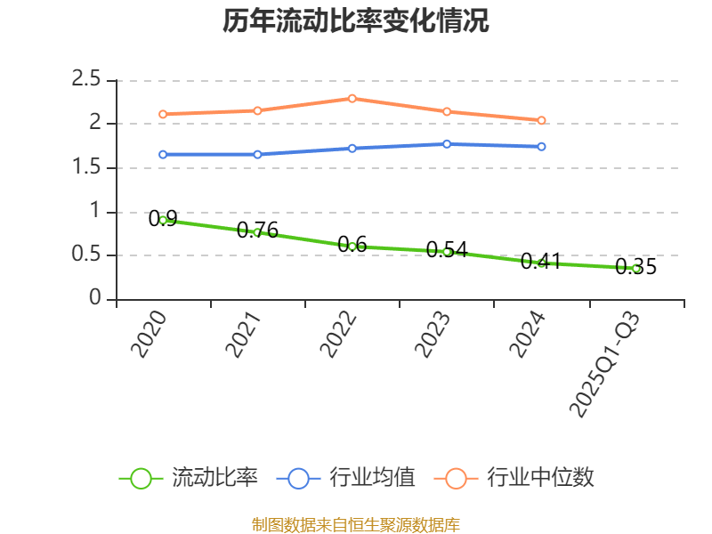 2025年前三季度,公司流动比率为0.35,速动比率为0.26。