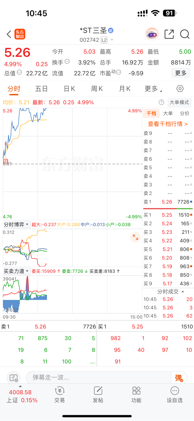 $*ST三圣(SZ002742)$ 明天是一场生死战,不出意外,明天低开低走,就看各位多头能否承接住了,能承接住,并且拉红,我们就走强,承接不住,又要坏事啦,明天低开继续加仓,今天也加仓啦