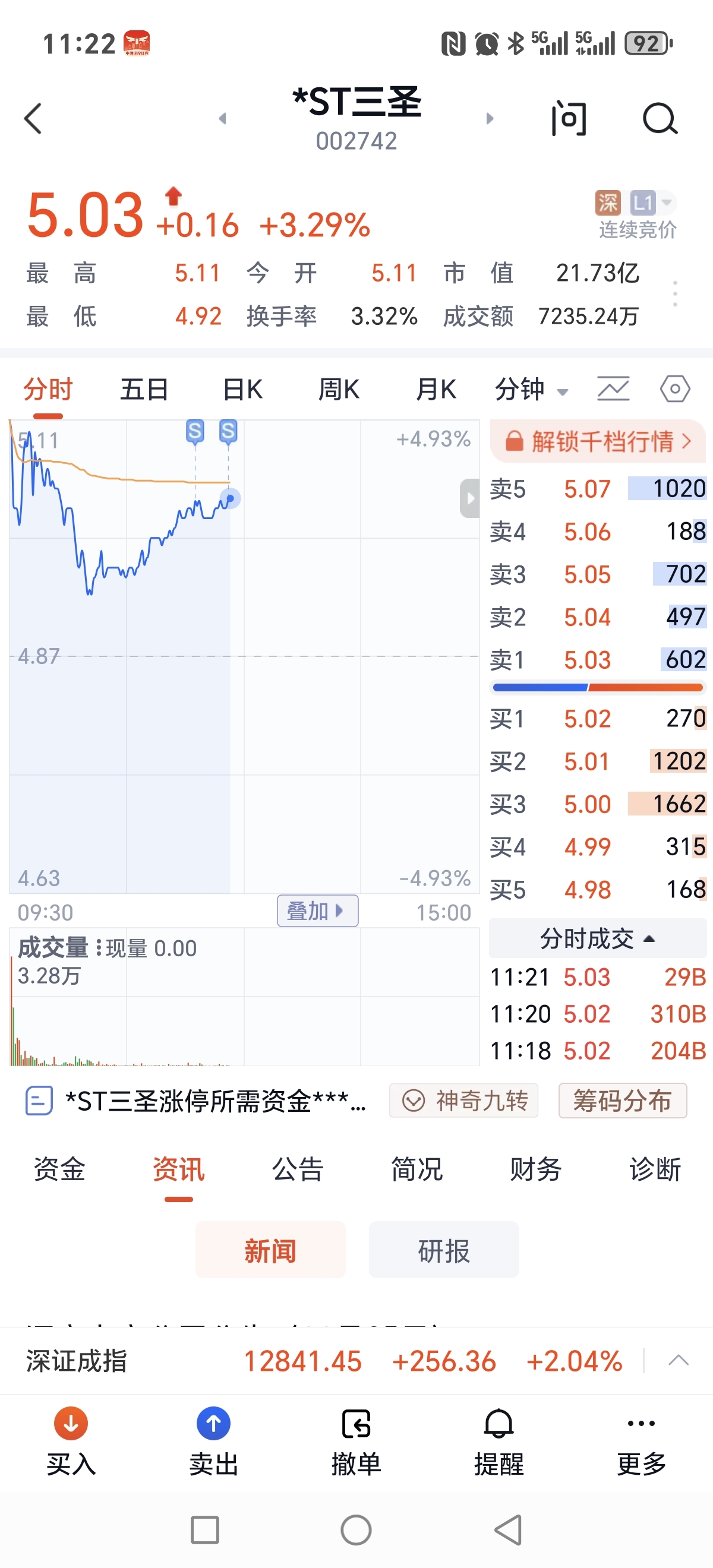 $*ST三圣(SZ002742)$ 5.03元止盈,祝你好运!