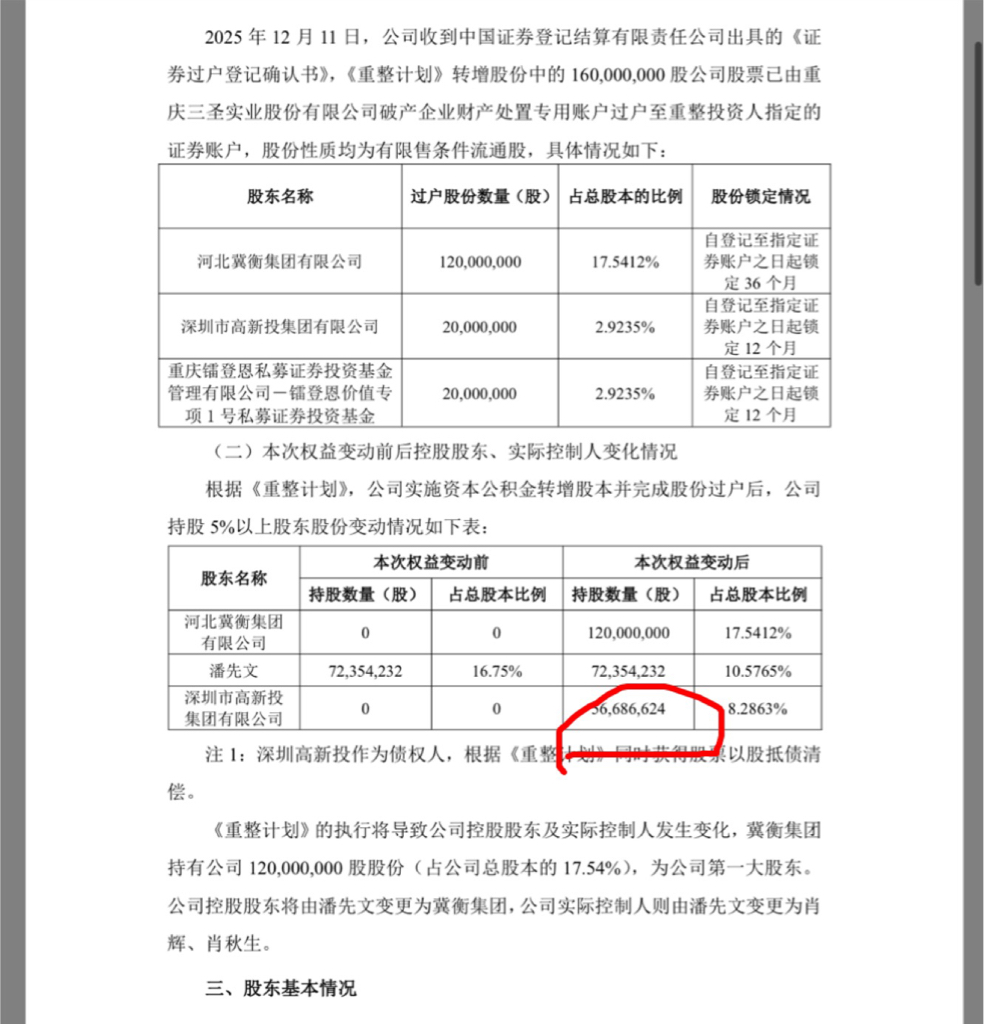 $*ST三圣(SZ002742)$ 有人能算出深高投的持股成本吗?1.53元2000万股,剩下3668.66万股成本8.96元。持有成本6.34元?对吗?
