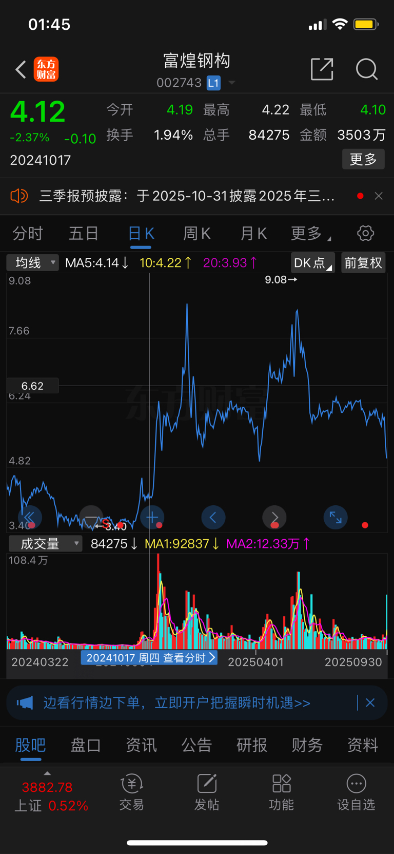 $富煌钢构(SZ002743)$ 跌到走漏风声抢跑的这个位置不是很正常吗,4块钱