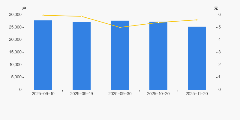 2025年9月10日至今,公司股东户数有所下降,区间跌幅为8.99%。2025年9月10日至2025年11月20日区间股价下降6.19%。