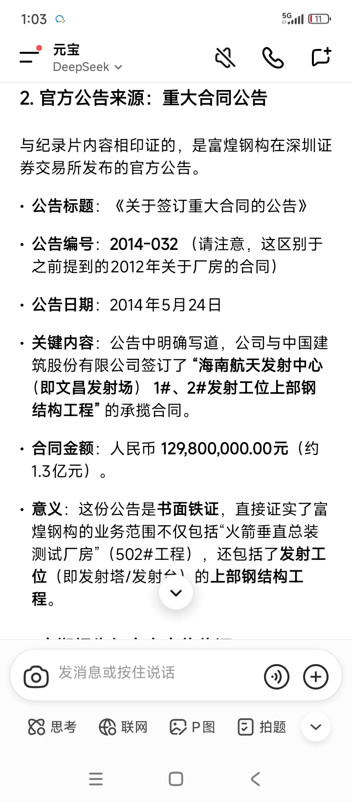 $富煌钢构(SZ002743)$ 富煌钢构也是商业航天概念股。2014年5月24日关键内容:公告中明确写道,公司与中国建筑股份有限公司签订了 “海南航天发射中心(即文昌发射场) 1#、2#发射工位上部钢结构工程” 的承揽合同。合同金额1.3亿元。