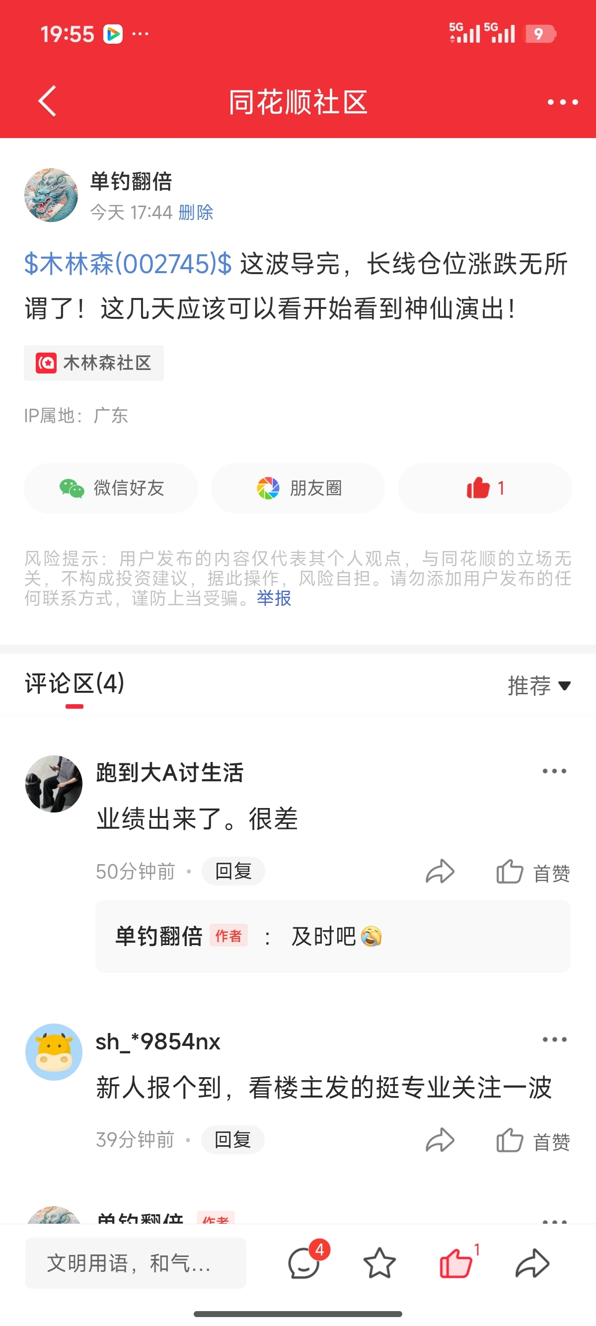 温馨提示: 1.根据《证券法》规定,禁止编造、传播虚假信息或者误导性信息,扰乱证券市场;2.用户在本社区发表的所有资料、言论等仅代表个人观点,与本网站立场无关,不对您构成任何投资建议。用户应基于自己的独立判断,自行决定证券投资并承担相应风险。《东方财富社区管理规定》