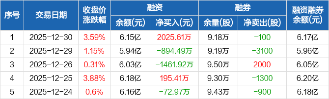埃斯顿:融资净买入2025.61万元,融资余额6.15亿元(12-30)