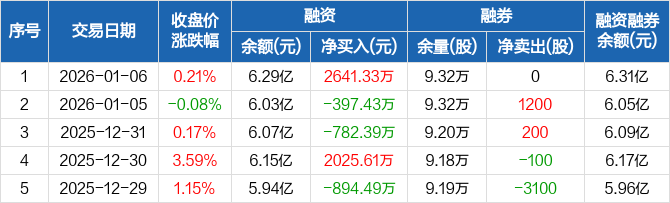 埃斯顿:融资净买入2641.33万元,融资余额6.29亿元(01-06)