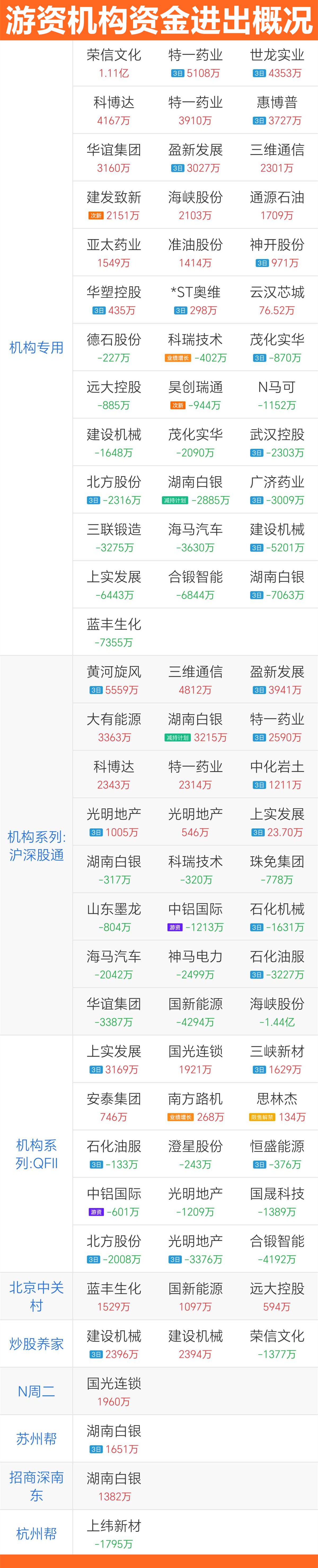 世龙_实业图一为涨停梯队及题材分布概况。图二游资机构资金出入概况。图三资金流入的