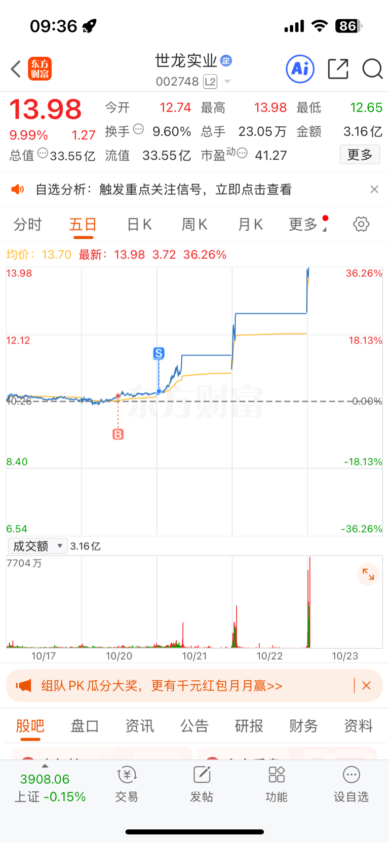 $世龙实业(SZ002748)$ 卖了你这几天买别的亏了10个点。吐血