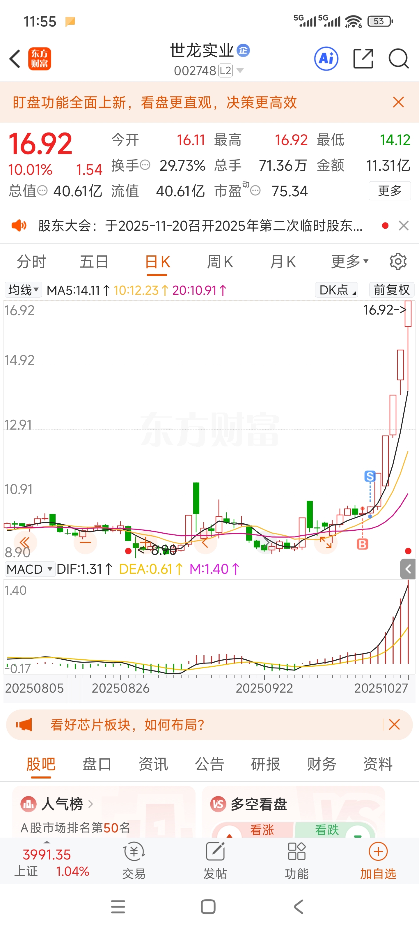 $世龙实业(SZ002748)$ 唉,祝大家股市长虹,拿的住能赚钱