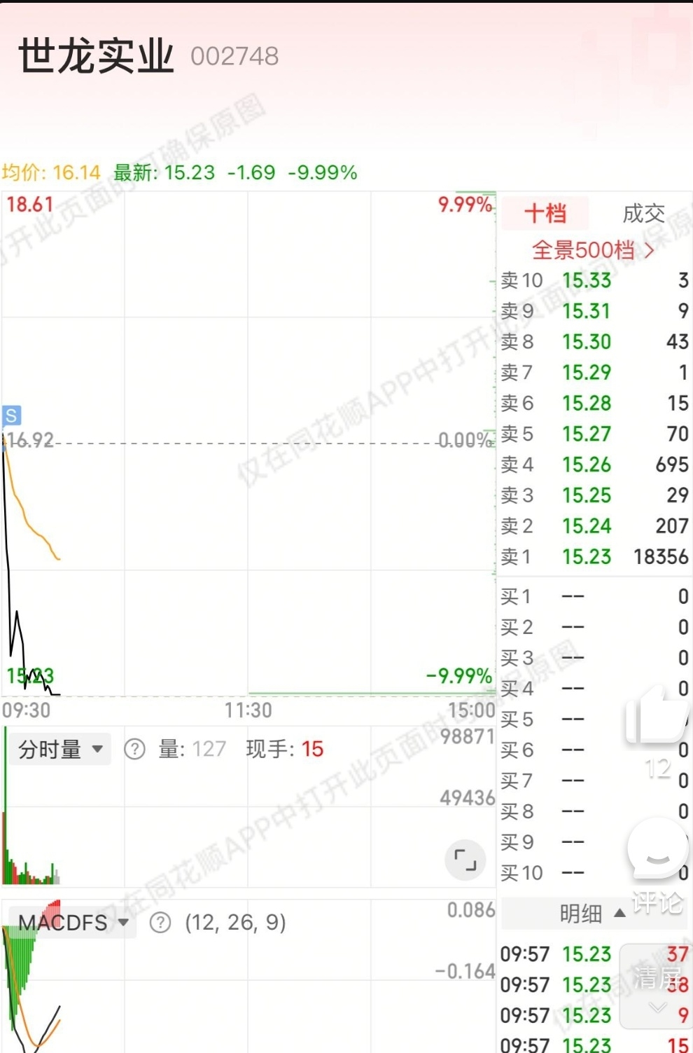 $世龙实业(SZ002748)$ 本座竞价已经跑了,想套我门都没有