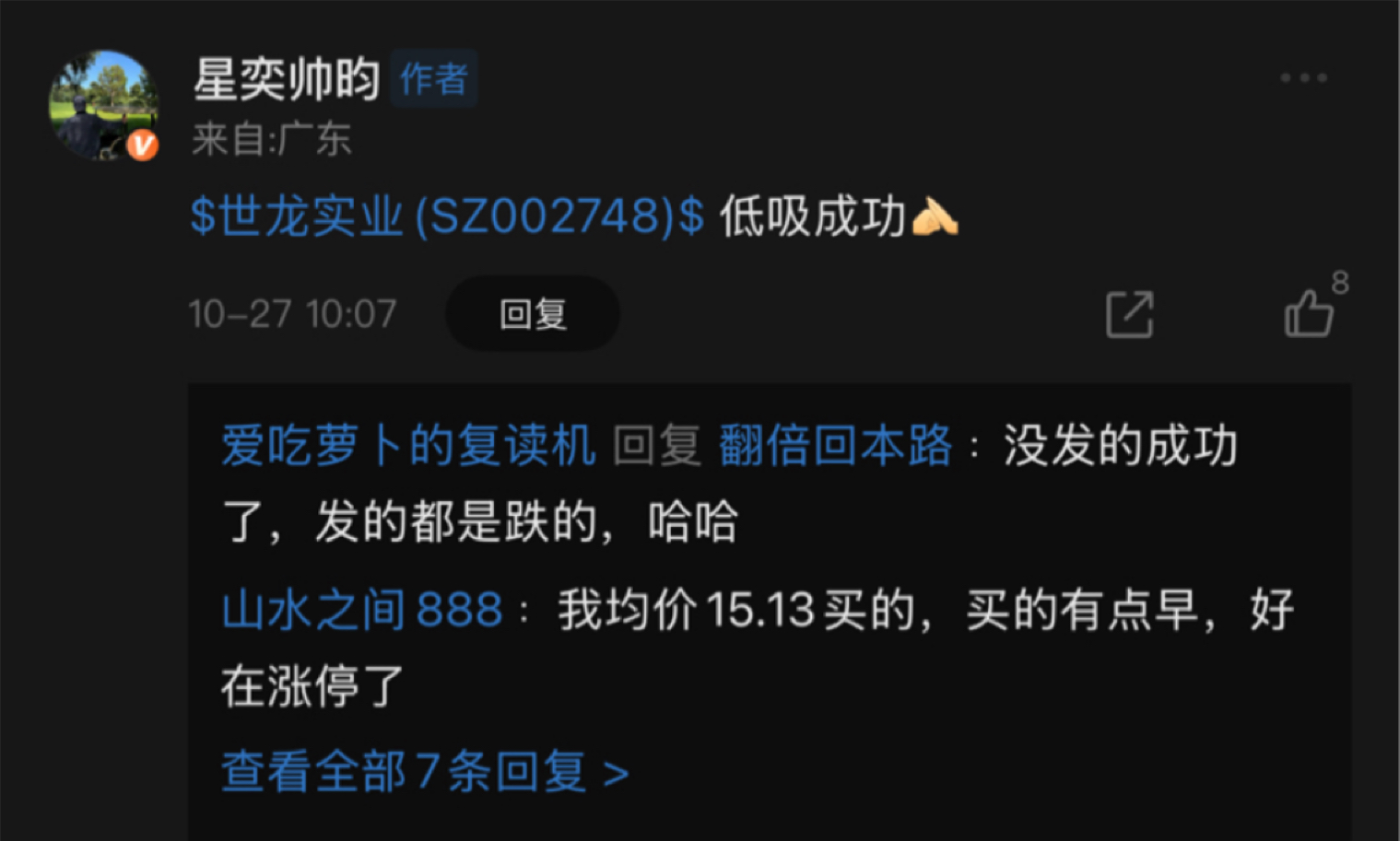 郑重声明:用户在财富号/股吧/博客等社区发表的所有信息(包括但不限于文字、视频、音频、数据及图表)仅代表个人观点,与本网站立场无关,不对您构成任何投资建议,据此操作风险自担。请勿相信代客理财、免费荐股和炒股培训等宣传内容,远离非法证券活动。请勿添加发言用户的手机号码、公众号、微博、微信及QQ等信息,谨防上当受骗!