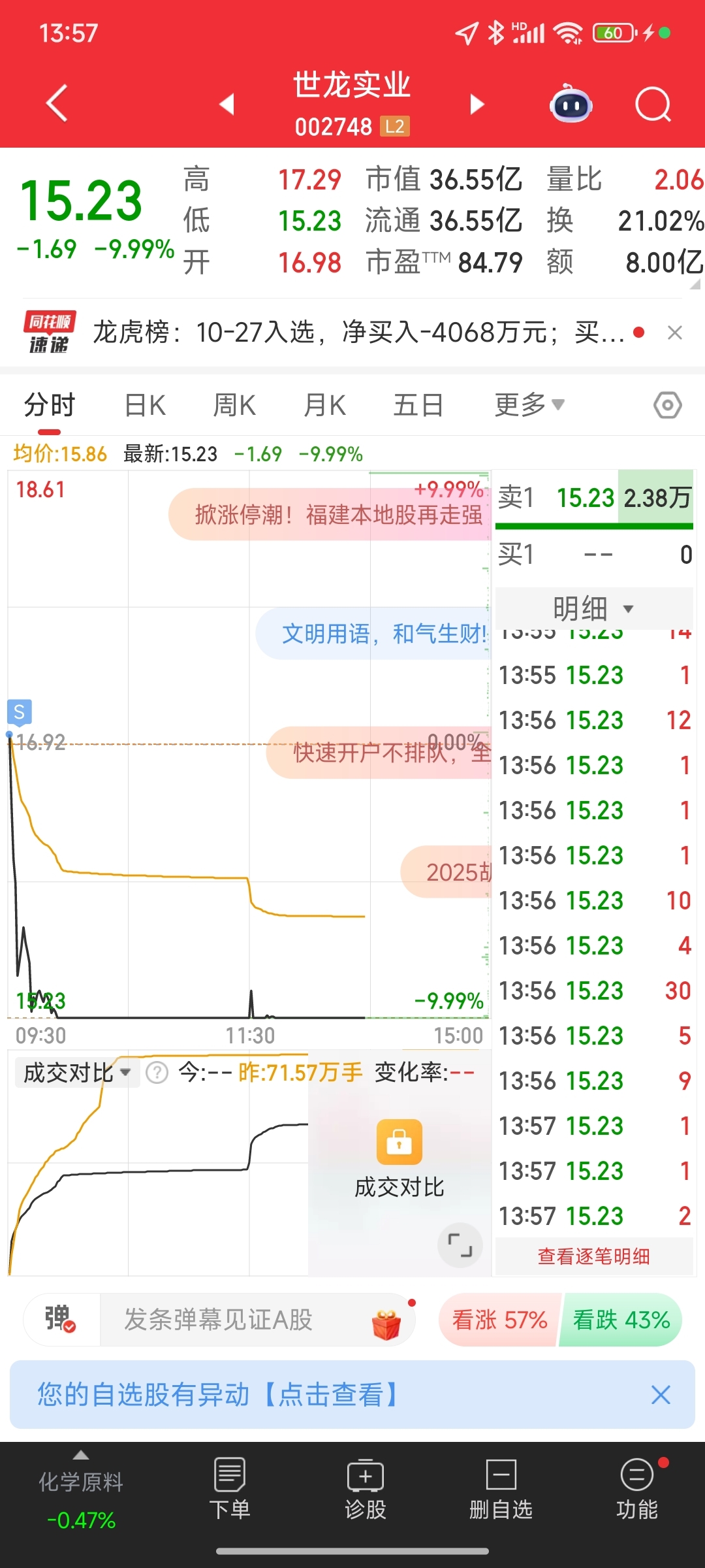 $世龙实业(SZ002748)$ 还好开盘走了,赚了瓶可乐,要不然就惨了