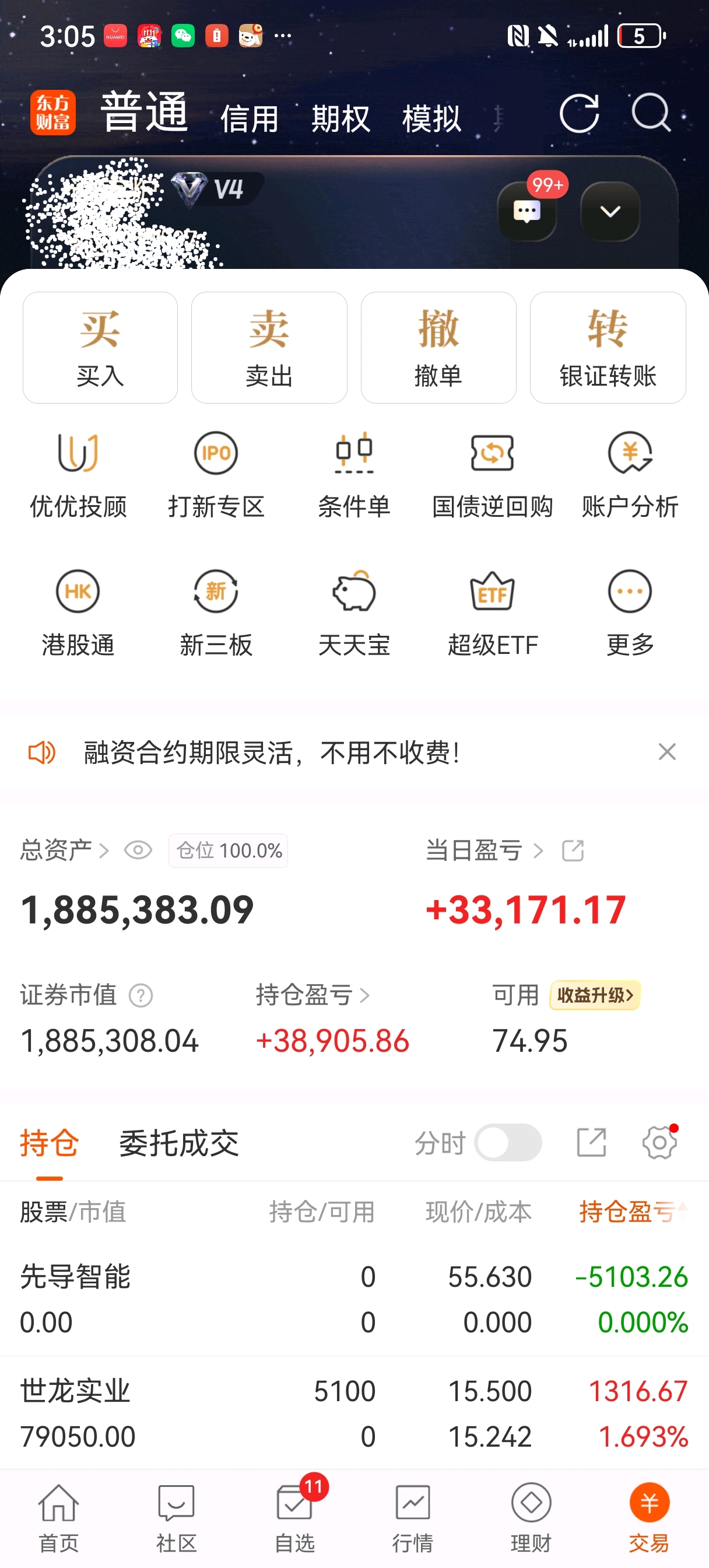 $世龙实业(SZ002748)$ 小仓位玩下翘板,今天出新易盛,天孚通信,先导智能,新介入$新莱应材(SZ300260)$ $东方财富(SZ300059)$ 持有没动,负的加了点仓,拉高也没卖,波动太小了,三生国健做了个倒t