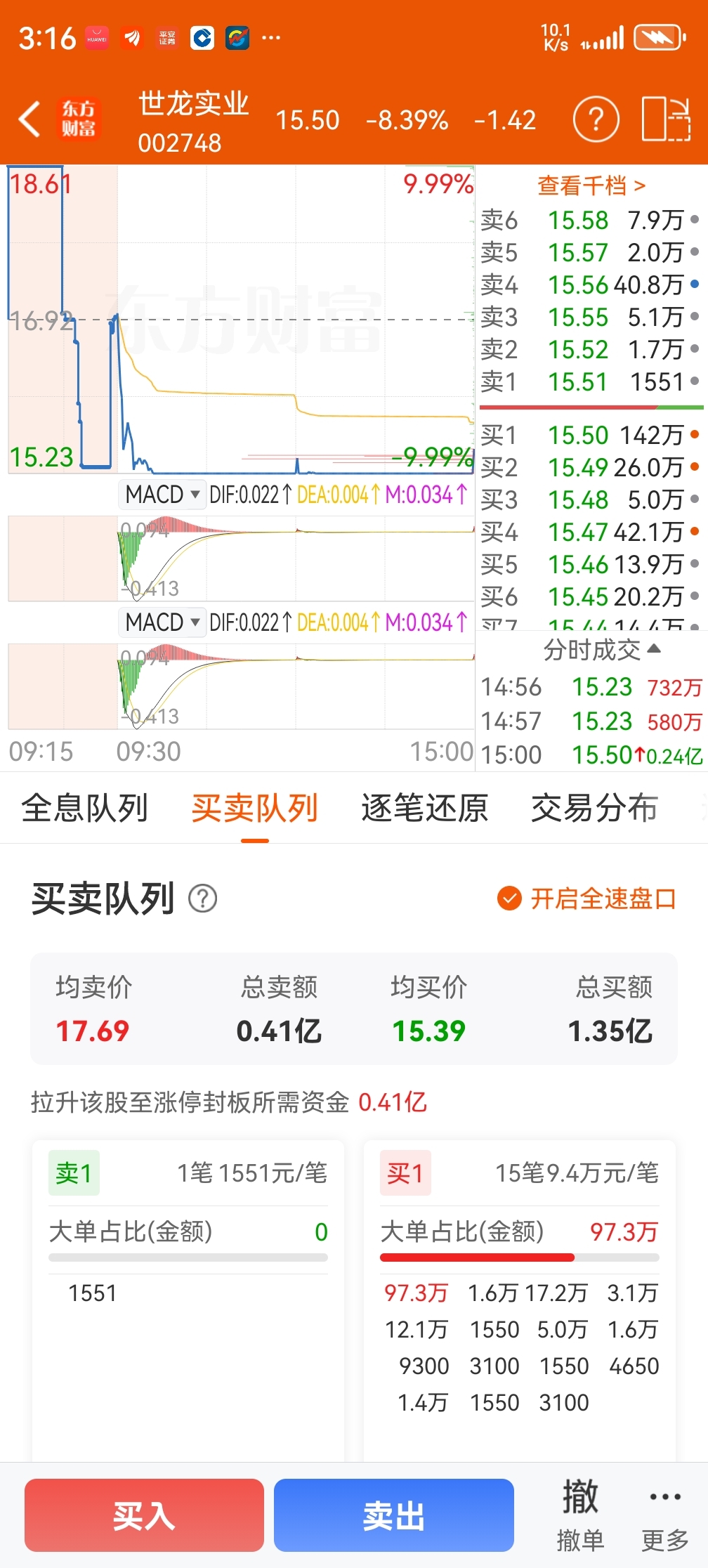 $世龙实业(SZ002748)$ 再来4100万挂涨停板,集合竞价直接涨停