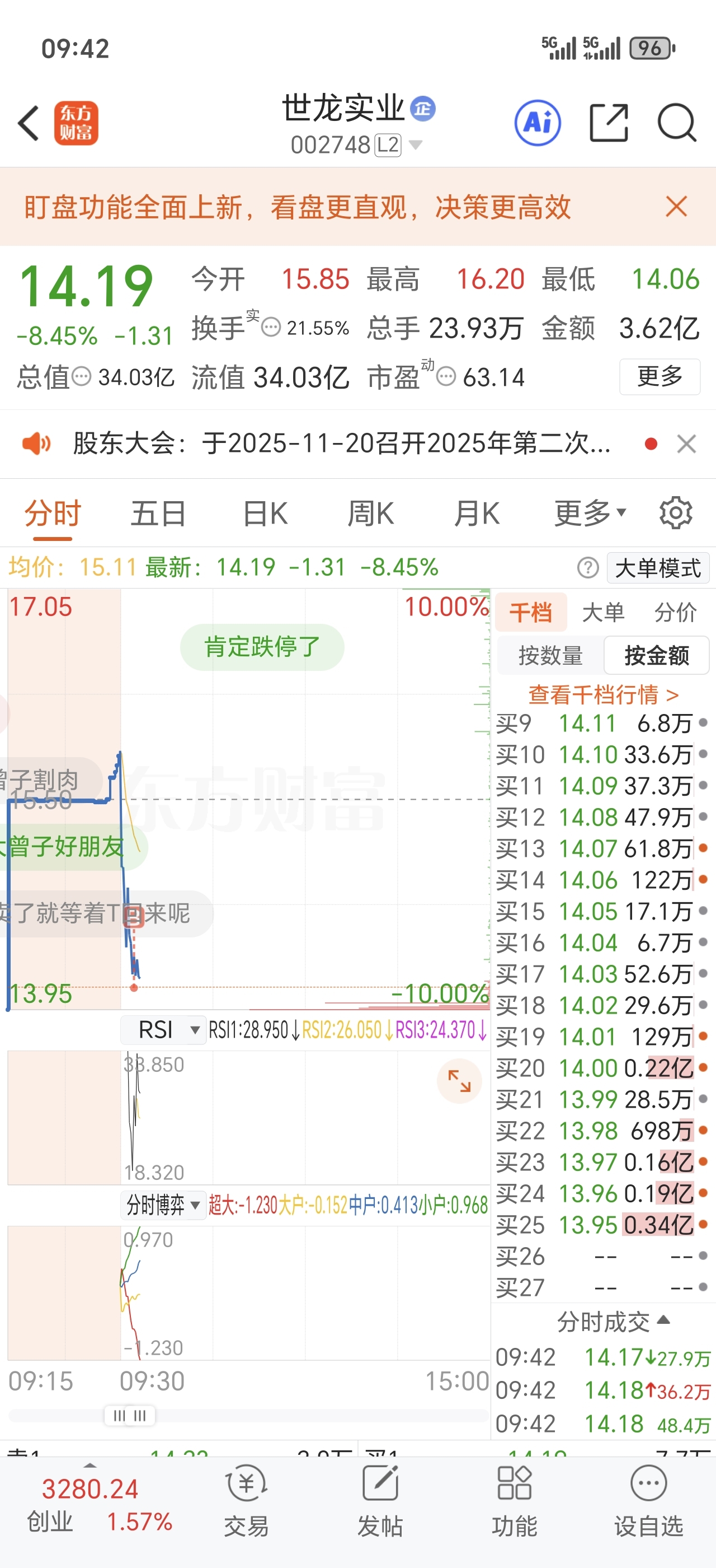 $世龙实业(SZ002748)$ 我后悔了,大曾子,就不挂单的,这摆明了还有一个停吃。