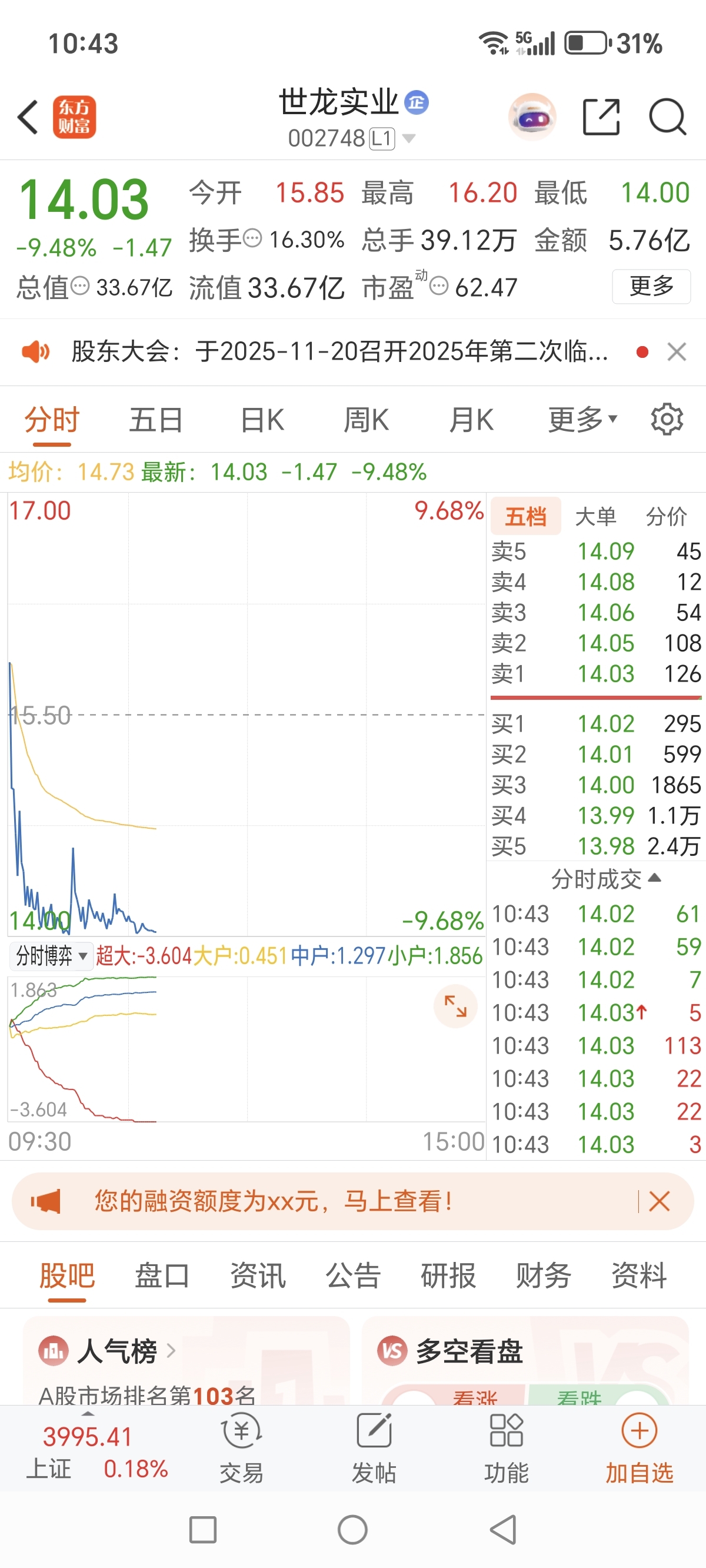 $世龙实业(SZ002748)$ $上证指数(SH000001)$ 我朋友想买入赌个地天板,他问我有什么意见,我是不是该劝他别买?