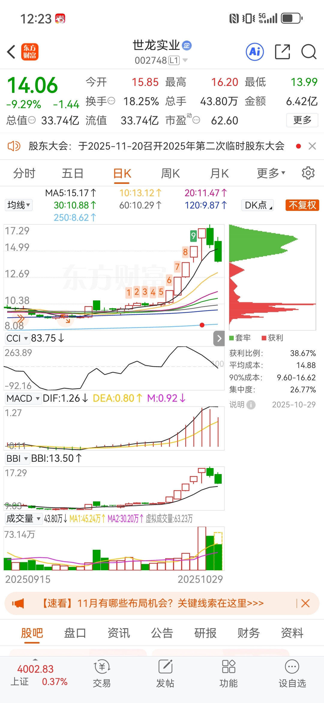 $世龙实业(SZ002748)$ 今天能反包就二波,不然人气散了,套牢盘会增多,看主力和柚子如何选择了