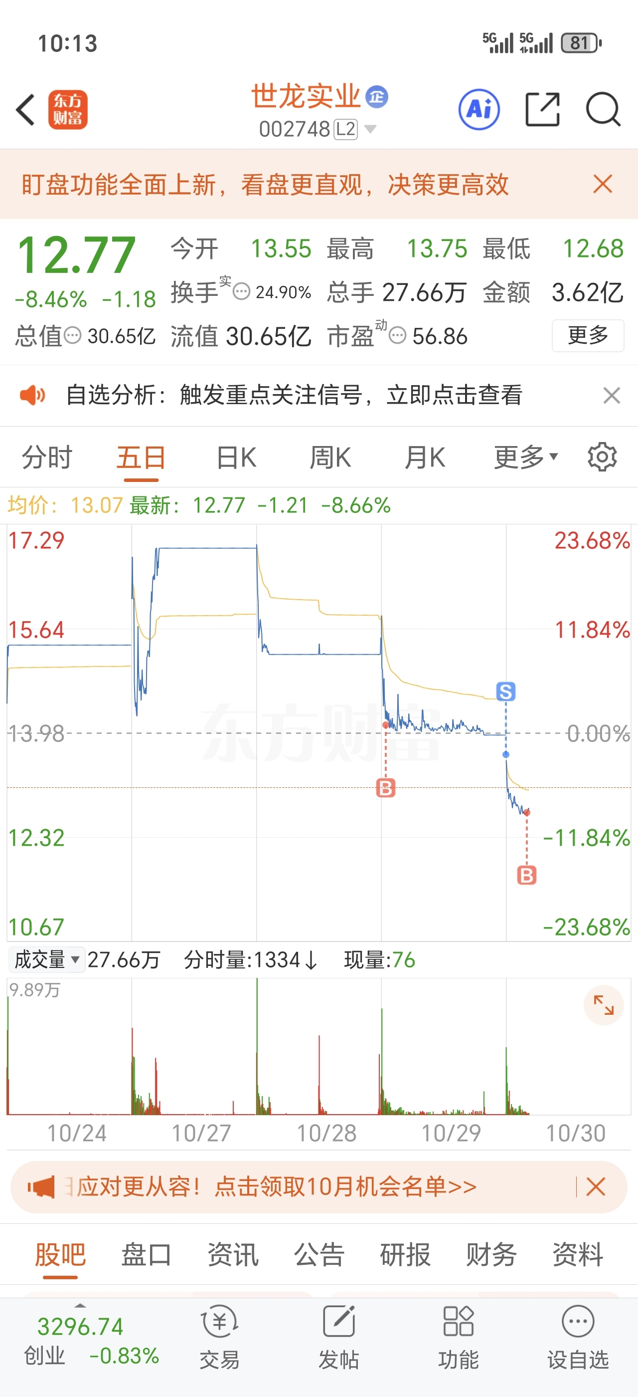 $世龙实业(SZ002748)$ 不甘心啊,大曾子。