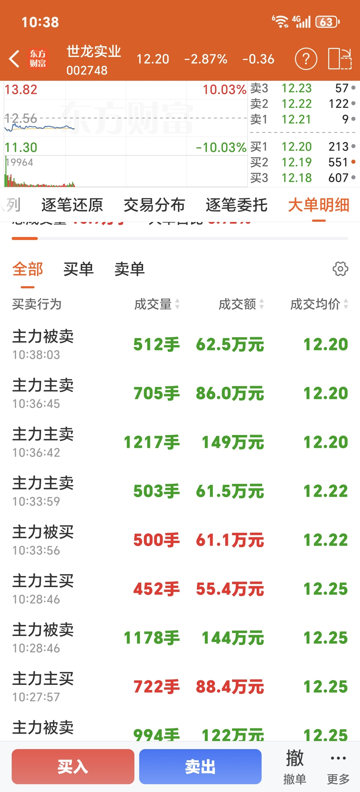 $世龙实业(SZ002748)$ 主力一直在卖,你们都不看吗?你们还涨涨,三天了还不清醒吗