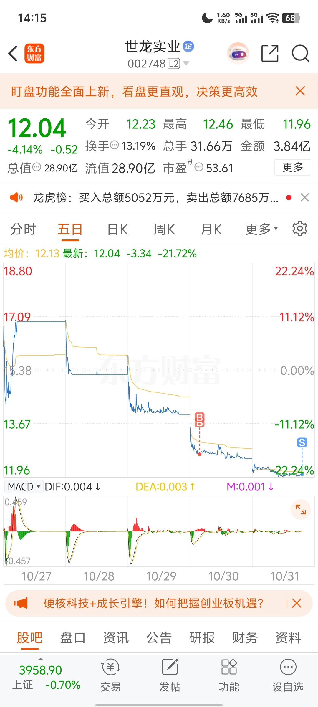 $世龙实业(SZ002748)$ 睡了一觉还是老样子,算了,撤