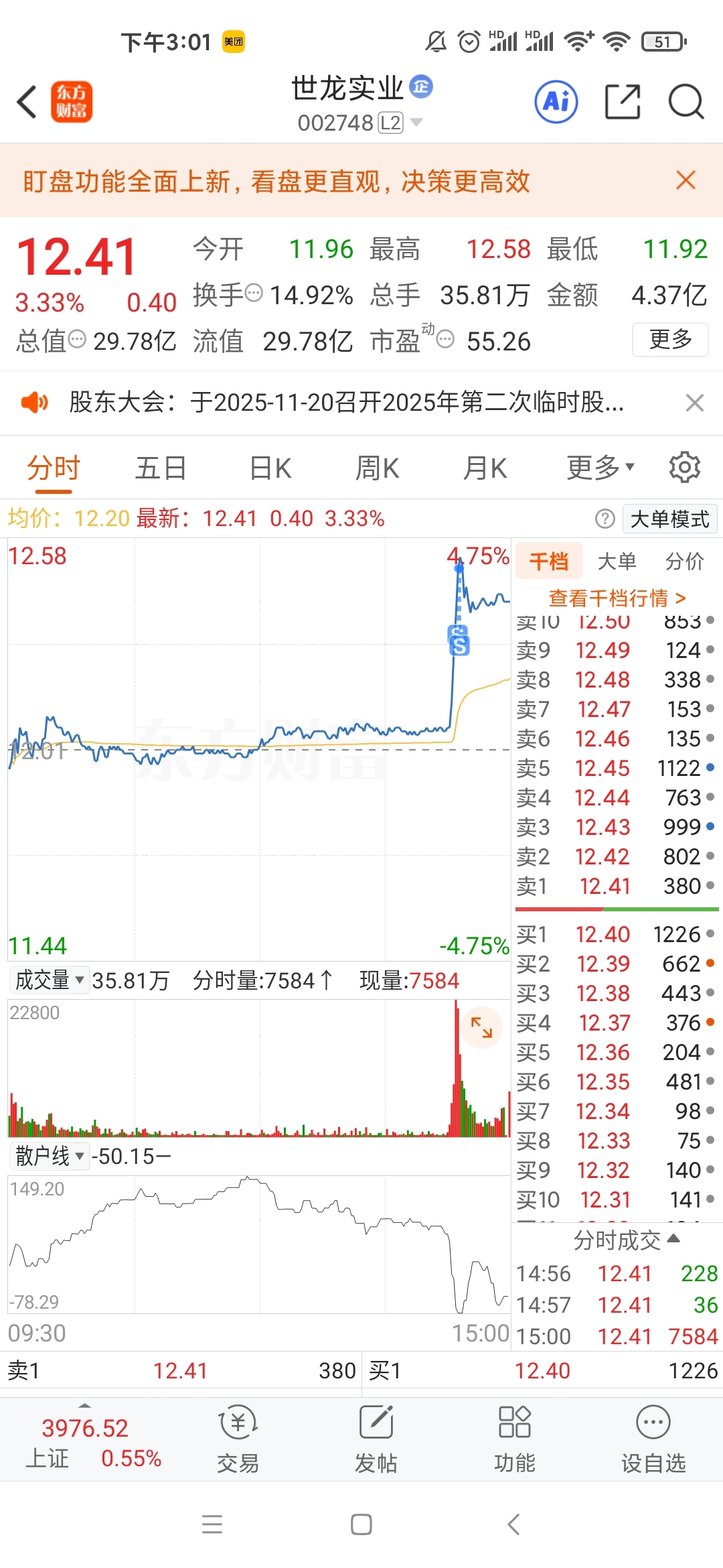 $世龙实业(SZ002748)$ 拉尾盘,来不及解释,快跑