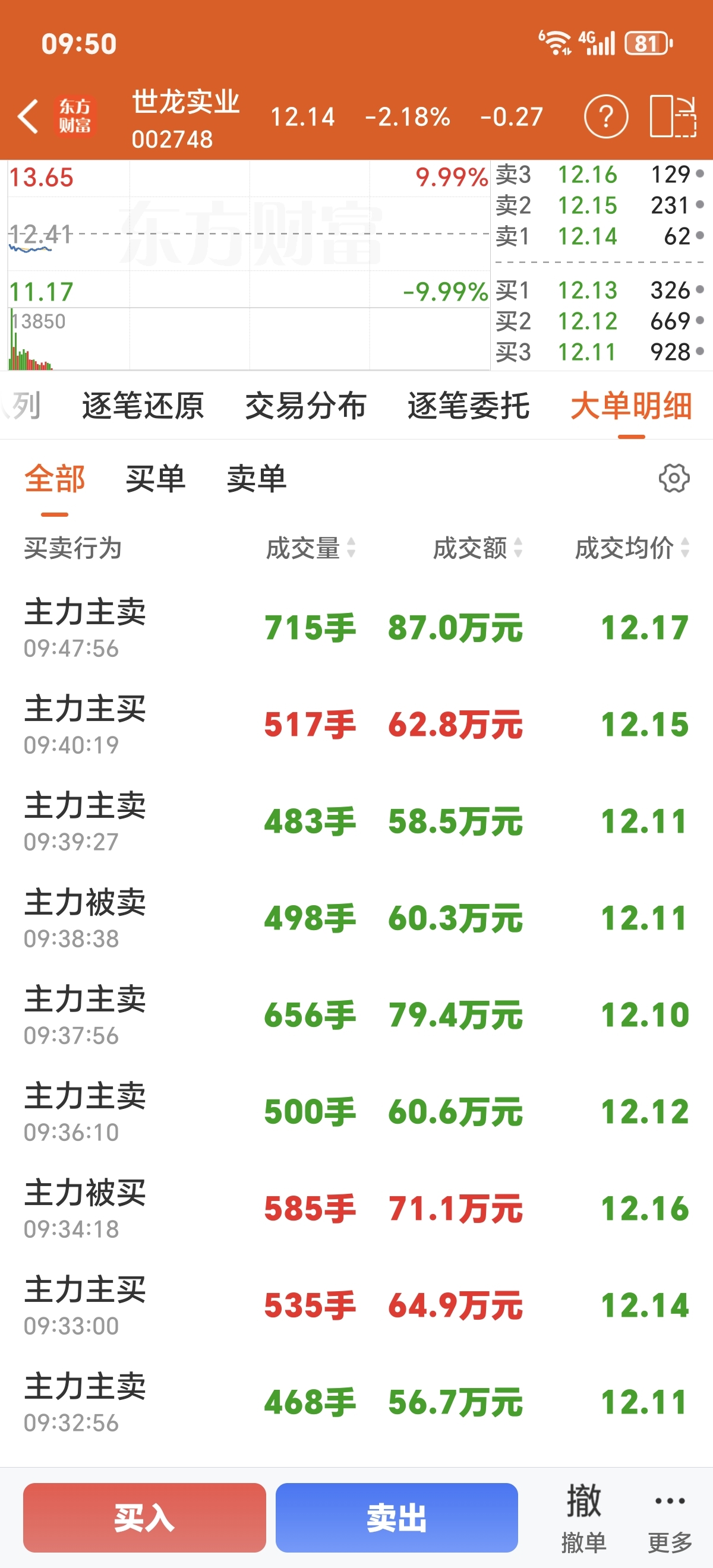 $世龙实业(SZ002748)$ 主力卖出得金额大过买入,怎么办,现在进会不会又被埋
