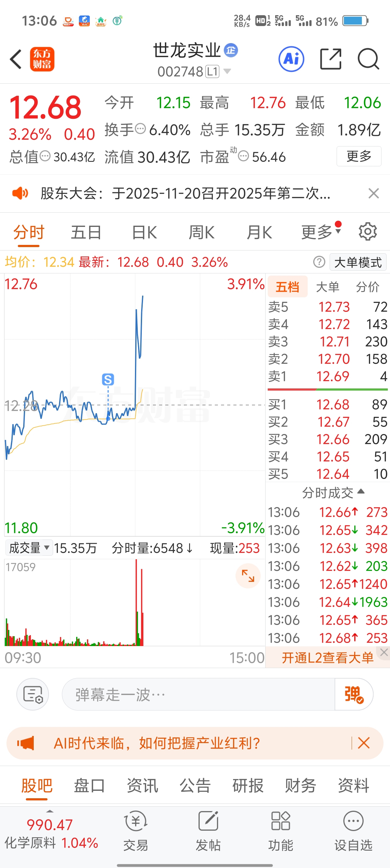$世龙实业(SZ002748)$