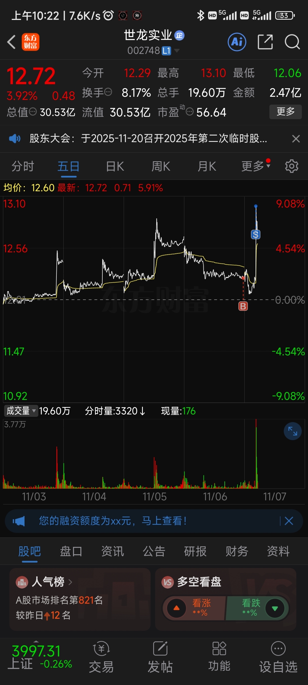 $世龙实业(SZ002748)$ 一日游 留下的兄弟发财