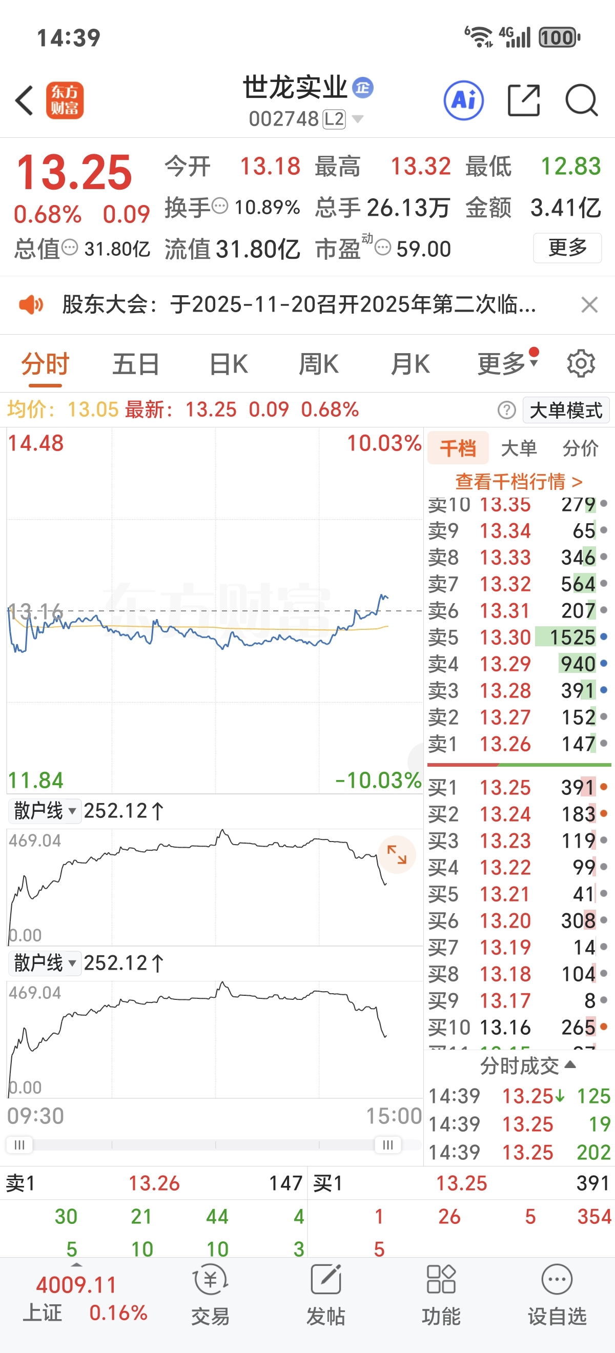 $世龙实业(SZ002748)$ 求你了,十分钟后跌回早上得位置,我还没进仓呢,尾盘买入法,你这涨我怎么进去做T