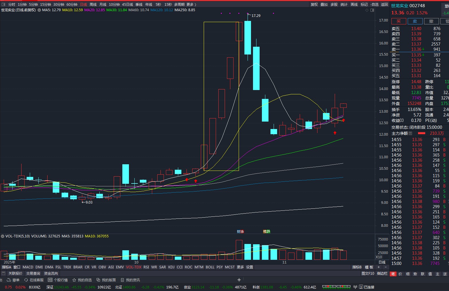 上洗天、下洗地的双阳双霸剑出现了,双剑霸天地,后市股价会霸气冲天的上涨,从明天开始会连续放量涨停板大阳线上涨,上一次10月17日和10月20日也出现了上洗天、下洗地的双阳双霸剑,结果后面连续5根放历史天量涨停板大阳线上涨。