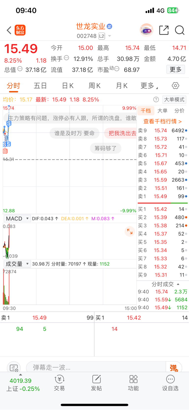 $世龙实业(SZ002748)$ 板上全清了,留个做T的卖不出去没办法,祝留下的发财。