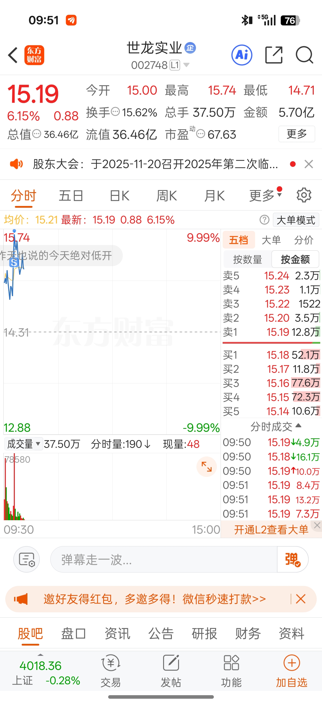 $世龙实业(SZ002748)$ 各位 最高点买的 今天解套 再见