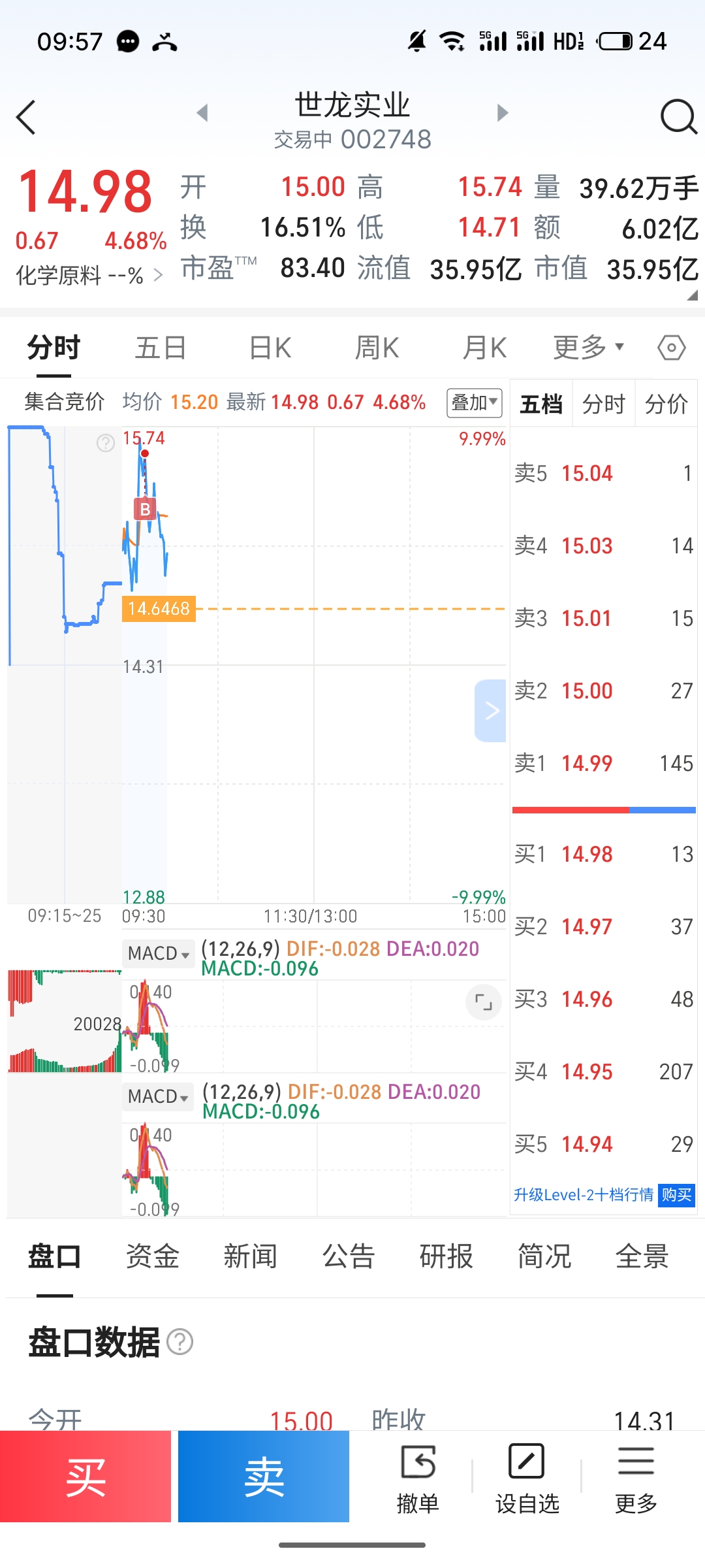 $世龙实业(SZ002748)$ 卖出的变成买进了,失误操作,本来想最大化盈利的,命里有时终须有,那就格局吧。