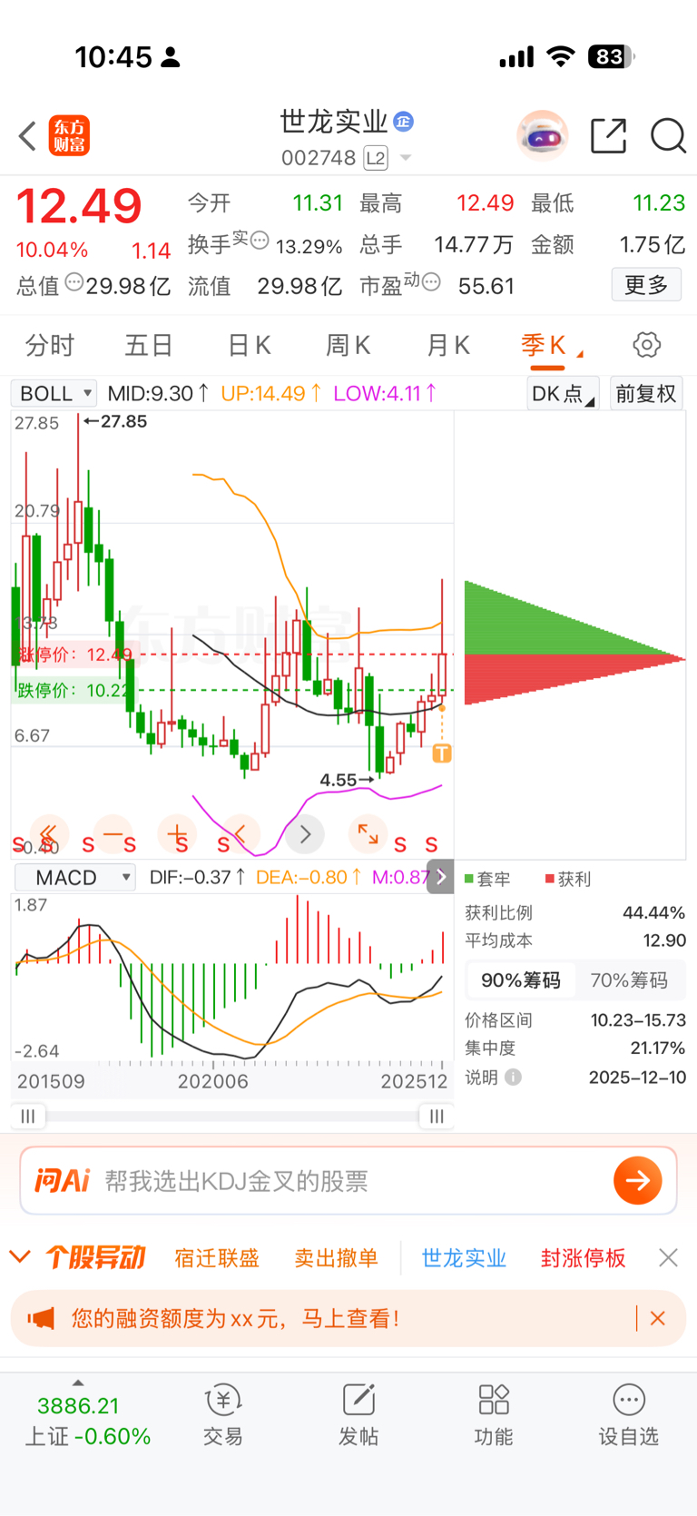 $世龙实业(SZ002748)$ 涨停了 冲冲冲