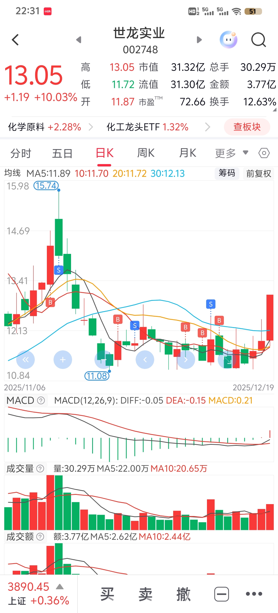 $世龙实业(SZ002748)$ 这个。。。是我这个月玩的最好的一只!