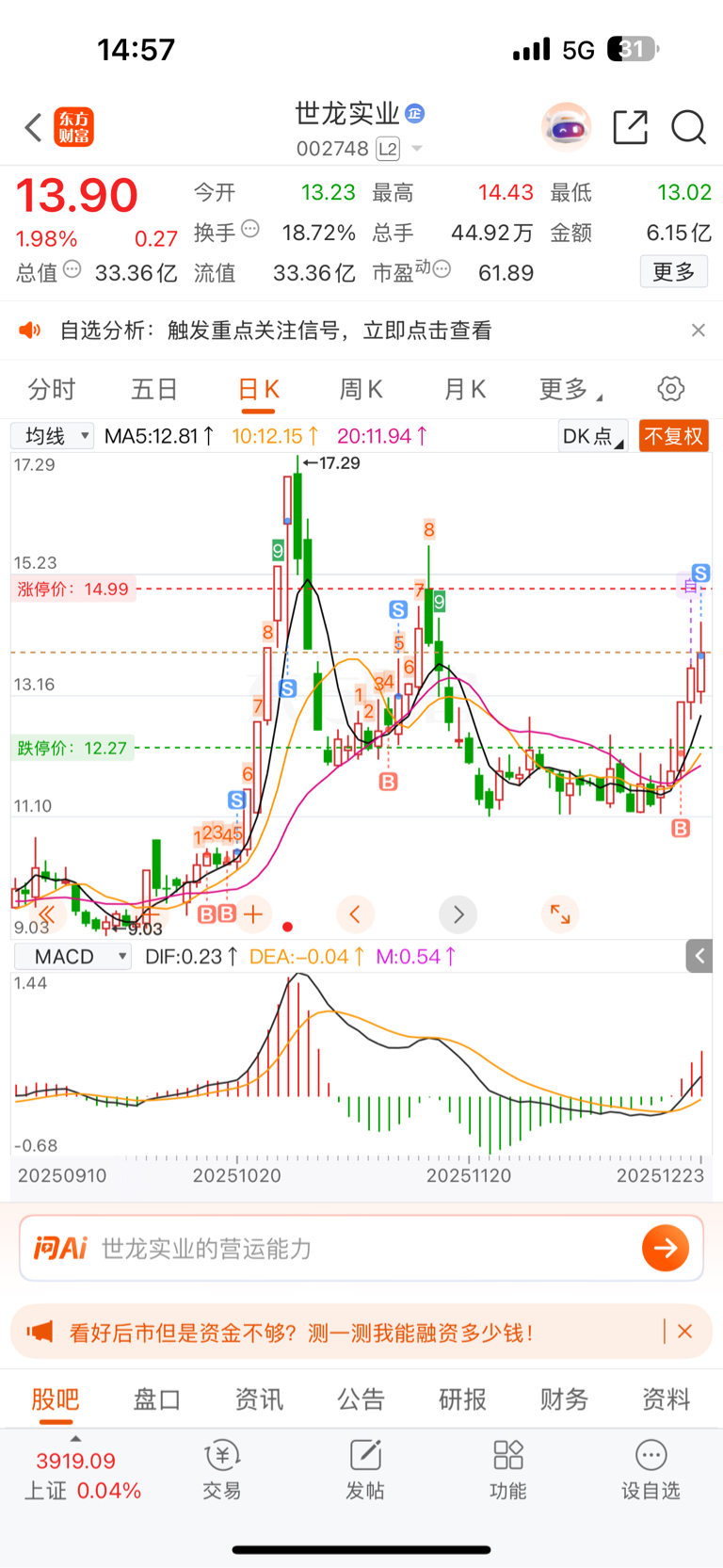 $世龙实业(SZ002748)$ 谢谢每次都吃肉