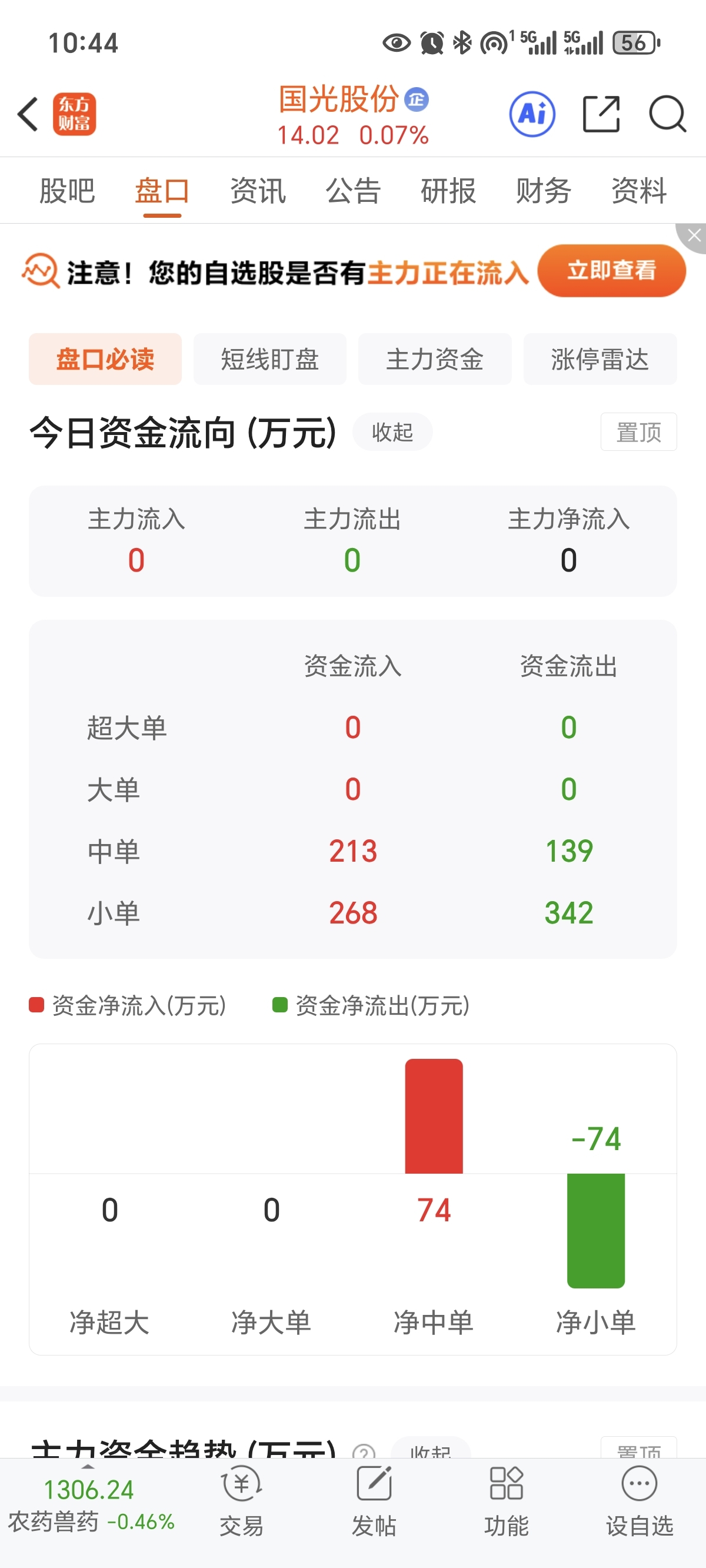 $国光股份(SZ002749)$ 自由摇摆,600万能拉到涨停!主力资金居然为0。