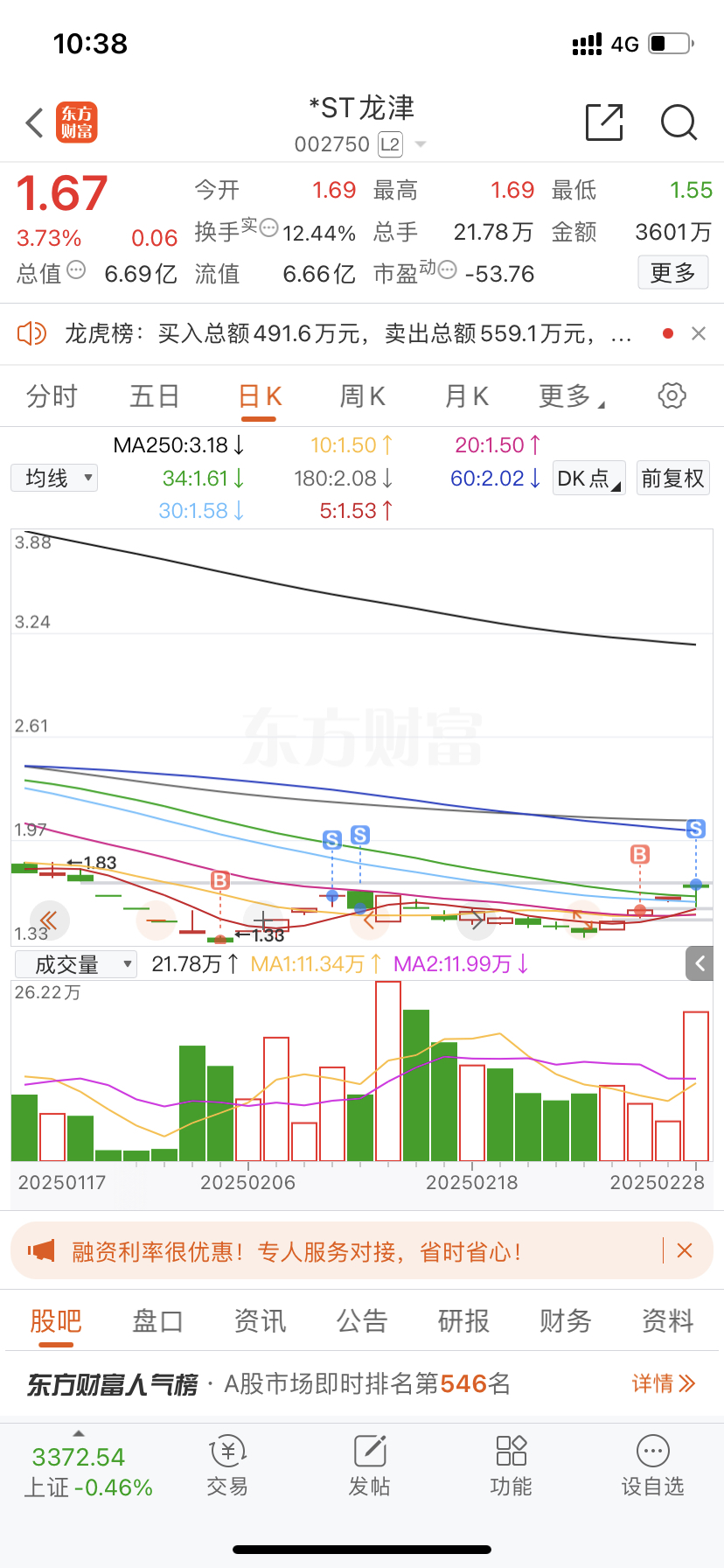 $*ST龙津(SZ002750)$ 大家有没有发现,不停地来回进进出出非常的有快感